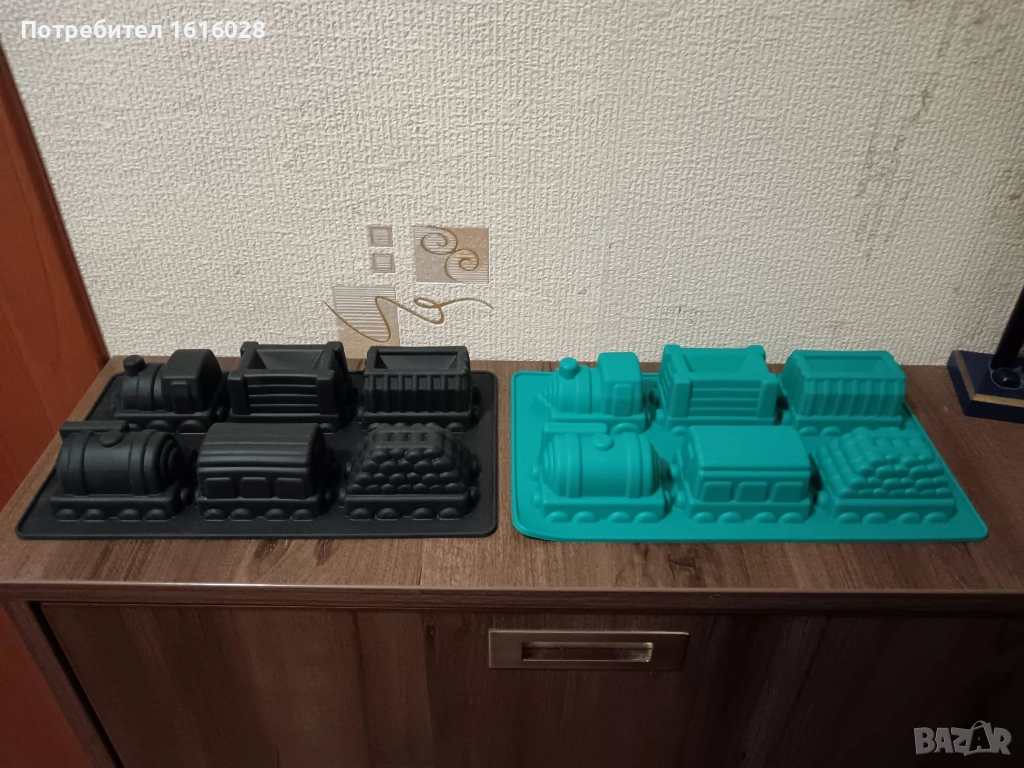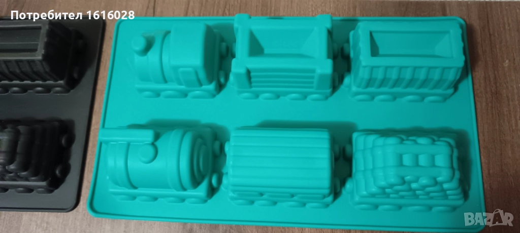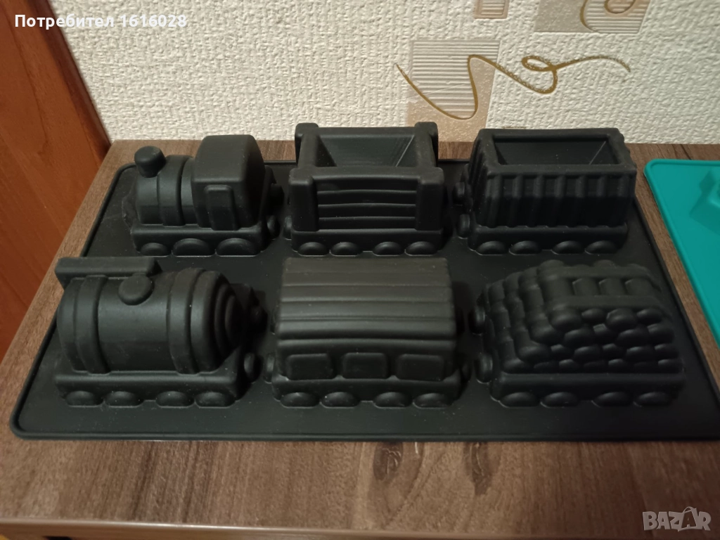Силиконов молд с формички на влак - локомотив с вагончета, за изработка на вашите творения.Кексчета,фондани,сапуни,свещи и др.