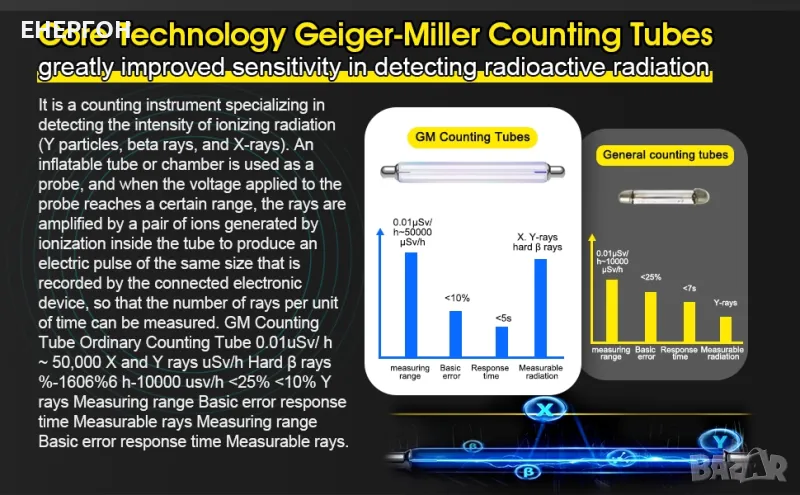 Гайгеров Брояч Детектор за Ядрена радиация дозиметър гама лъчи гамафон