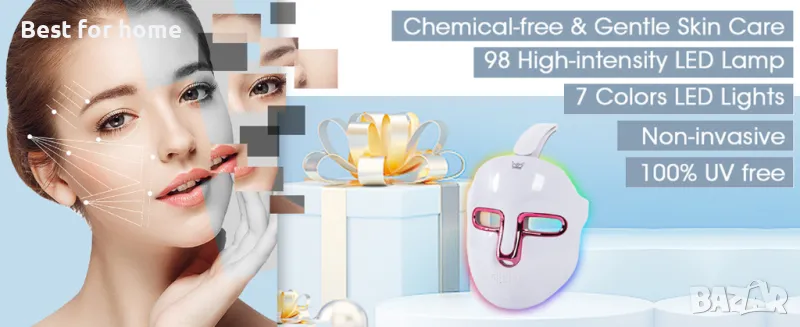 Светодиодната светлинна терапевтична маска е устройство с форма на маска за лице, предназначено за домашна употреба, което използва диоди, излъчващи светлина, за да излъчва енергия в червената, синя и инфрачервена област на спектъра.