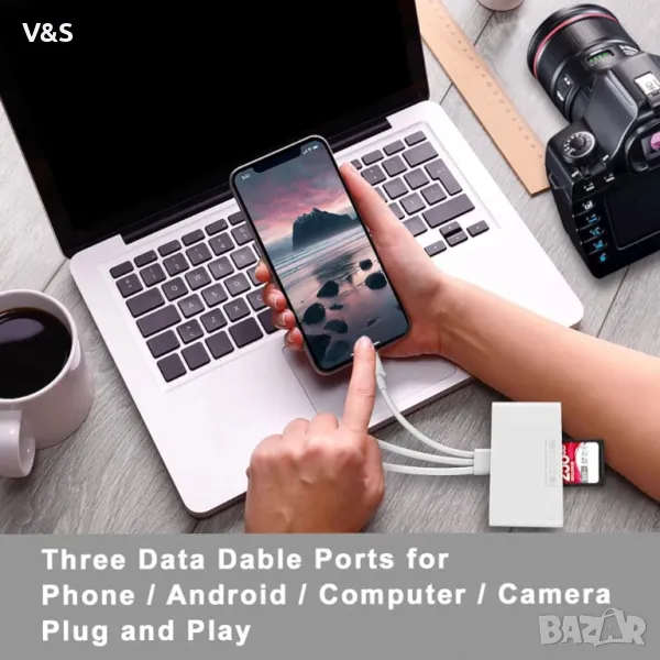 Зареждане за i-Phone/Pad: За разлика от други адаптери за sd карти, нашият надграден четец на sd карти има порт за зареждане за i-Phone/Pad. Зареждането и четенето могат да се извършват едновременно, така че вече не е нужно да се притеснявате, че телефонът ще остане без захранване по време на процеса на прехвърляне.