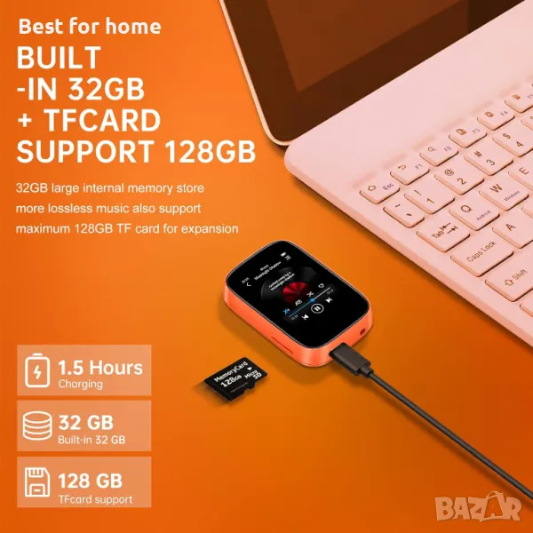 ♬ 【Bluetooth mp3 плейър с 32GB】Този музикален Mp3 плейър се доставя с вътрешна памет от 32GB, уверете се, че повече песни могат да бъдат запазени в джоба ви, освен това може да поддържа и разширена памет до 128GB НЕ СЕ ПРИТЕСНЯВАТЕ ЗА ПАМЕТТА