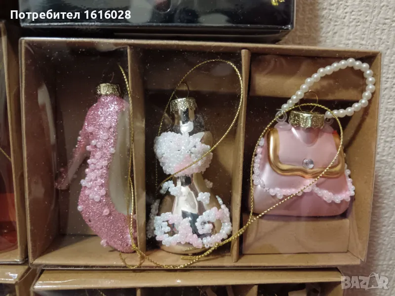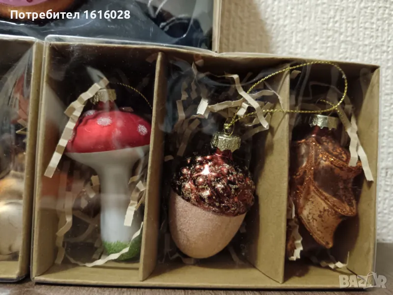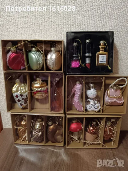 стъклени играчки за елха.Всяка кутия е с три играчки и е на цена 8 лв.за 1 кутия.