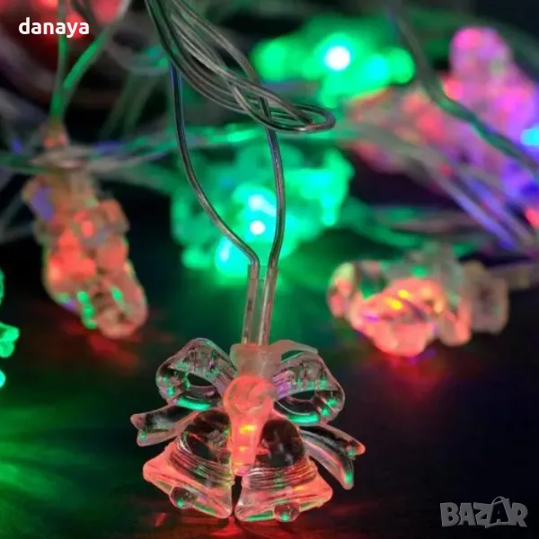 28 бр. светещи LED лампички Камбанки/дължина само на гирлянда 280 см/;