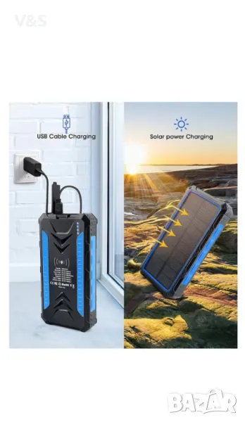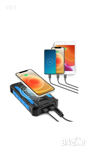 Външна батерия 36000 mAh, соларен Powerbank с Qi безжично зареждане, USB и USB C изход, със соларен