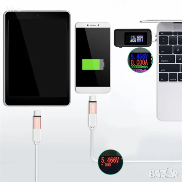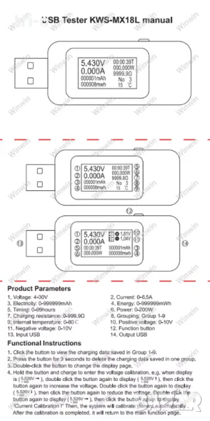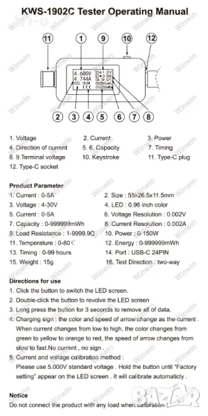 10 в 1 Digital Dispay 4-30V DC TYPE-C тестер Текущо напрежение, Индикатор на зарядното устройство, Капацитет на батерията, Волтметър, Детектор Време, Амперметър.