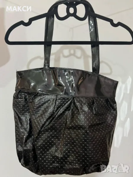 Дамска ежедневна стилна чанта с широко, удобно и практично разпределeние, така че да побере и организира всички ваши неща. Затваря се с цип. Мека, комфортна, с лачени дръжки и елементи в черно със сребристи акценти.