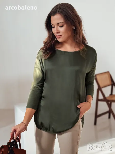 Блуза със сатенен елемент е перфектният избор за всеки повод, съчетаваща елегантност и комфорт. Деликатната материя осигурява мекота на допир и лекота при носене, подчертавайки женствения стил. Блузата се съчетава добре с различни аксесоари, създавайки фина, но изразителна визия. Перфектен за вечерни излизания или ежедневни стилове, които искат да останат елегантни.