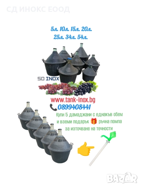 При закупуване на 3 различни дамаджани, получавате 🎁 ръчна помпа за течности (важи при покупка на дамаджани от 15 литра нагоре)