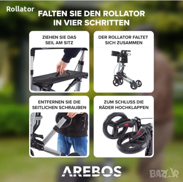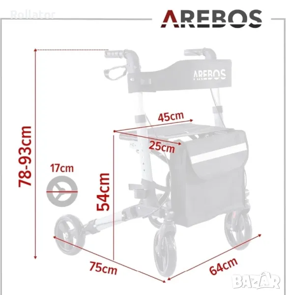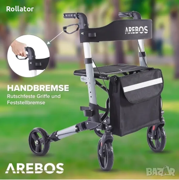 С ролатора Arebos получавате не само помощ при ходене, но и частица независимост и свобода. За много хора самоопределящият се живот представлява максимално качество на живот. Това прави още по-важно да могат да разчитат на безопасността на ролатора.