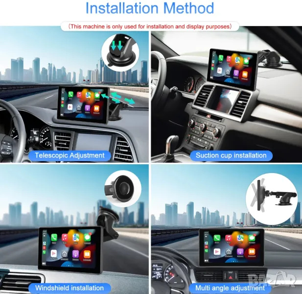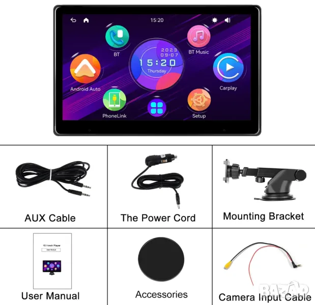Монитор за автомобил, 10.1 инча, мултимедия за кола, Apple Carplay, YouTube, Android Auto, навигация