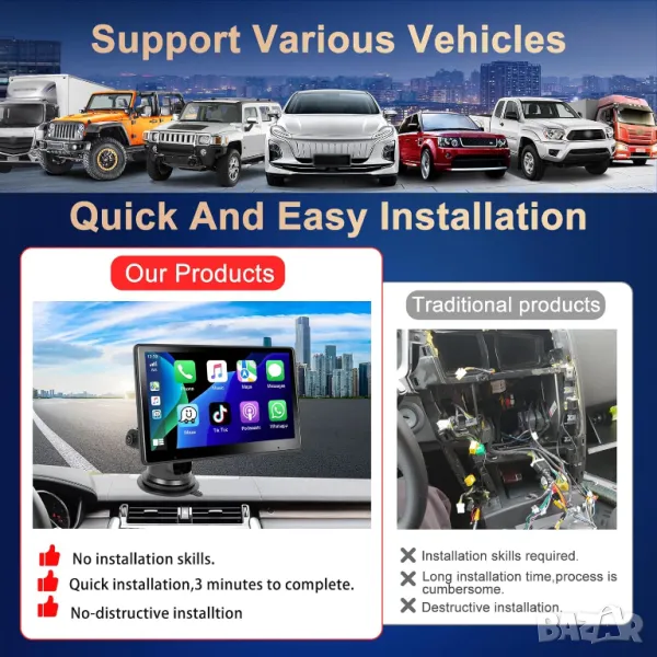 - Поддържа 99% от превозните средства, лесна инсталация.