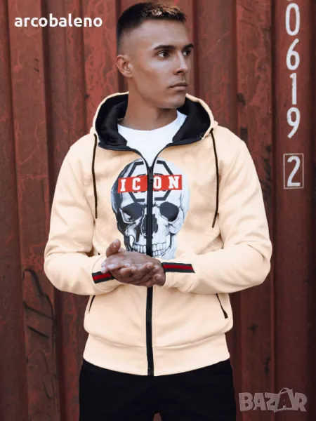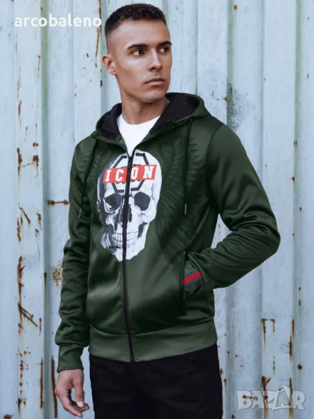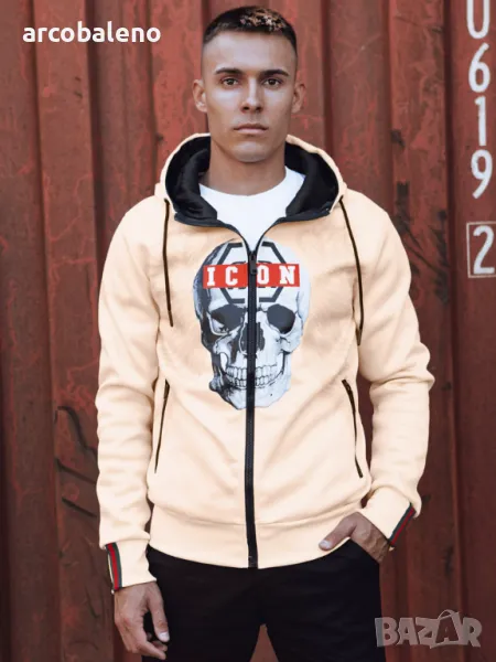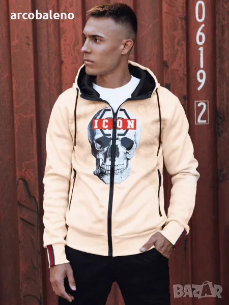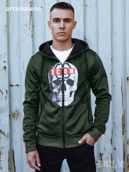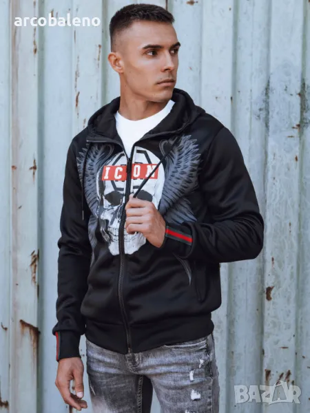 Суичър, който съчетава отличителен дизайн с удобството на ежедневно носене. Принтът с череп и надпис "ICON" му придава уникален характер, идеален за хора, които обичат да се открояват от тълпата. Изработен от висококачествен материал, той осигурява топлина и комфорт, като същевременно подчертава вашия индивидуален стил. Перфектен за всеки повод - от градски разходки до срещи с приятели.