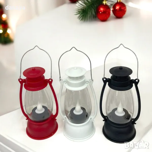 Ретро коледен фенер. Коледна електронна свещ, светилник. Добавете уют и магия към празничната атмосфера с този декоративен светещ коледен фенер, вдъхновен от ретро лампите. Компактен и елегантен с височина от 13 см и ширина от 6 см, фенерът е изработен от качествена пластмаса. В центъра му има малка електронна свещичка, която нежно примигва, създавайки реалистична имитация на истинска свещ с топла, мека светлина. С практична халка за закачане, този фенер е перфектен акцент за всяко пространство, където искате да внесете топлина и коледен уют.