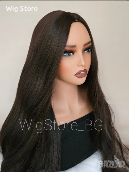 Тъмно кафява перука без бретон на вълни → Обява 47824728