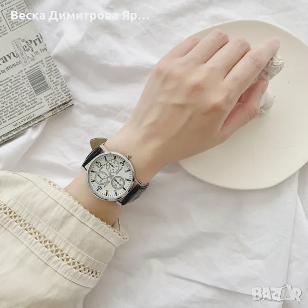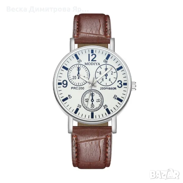 Мъжки спортно-елегантен ръчен часовник с кожена верижка "Вариант 1: мъжки часовник с черен циферблат и черна каишка; Вариант 2: мъжки часовник с черен циферблат и кафява каишка; Вариант 3: мъжки часовник с бял циферблат и кафява каишка.