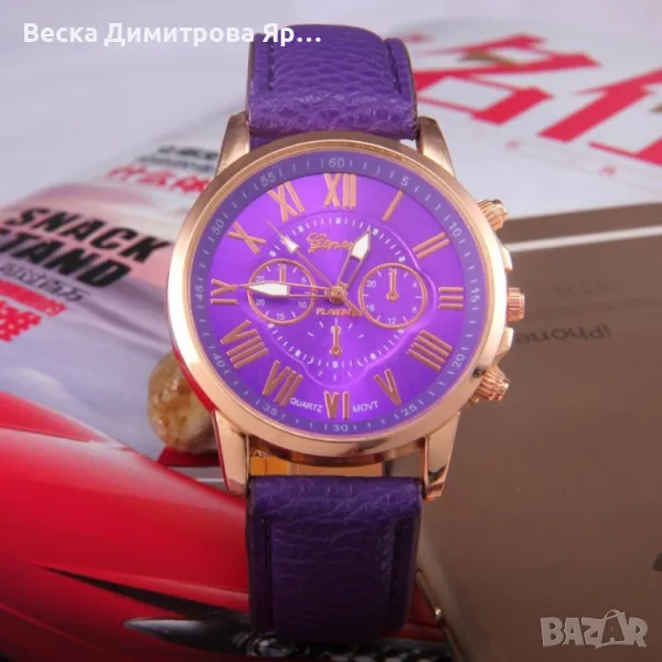 Дамски кварцов часовник с кожена верижка, различни цветове Цвят на часовника: бял, лилав, син, черен, розов, кафяв, зелен, бежов.