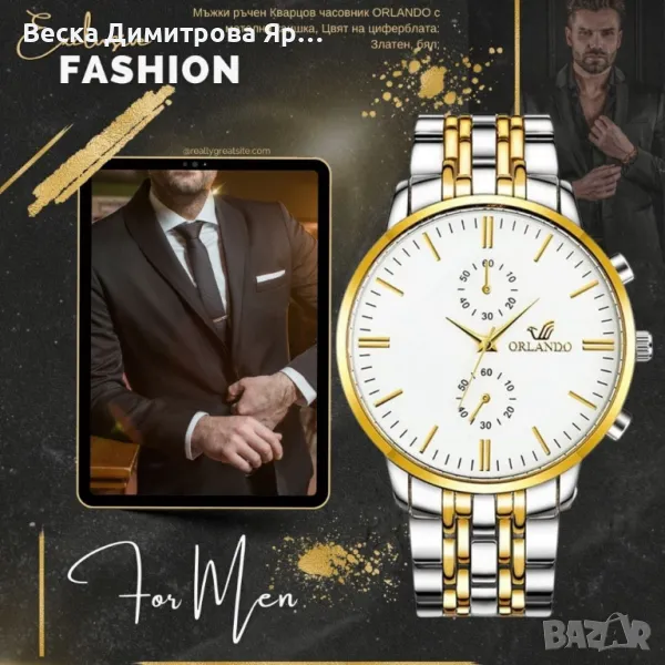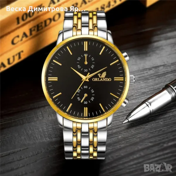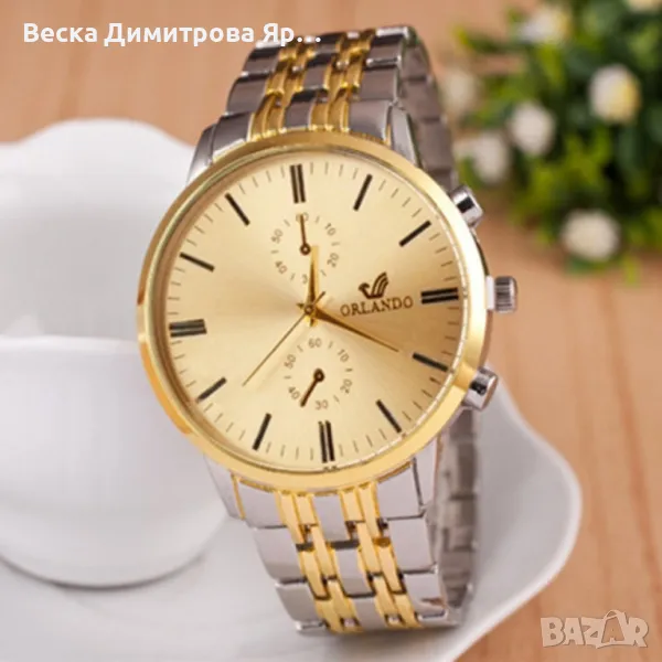 Мъжки ръчен Кварцов часовник ORLANDO с метална каишка, Цвят на циферблата: Златен, бял; → Обява 47825150