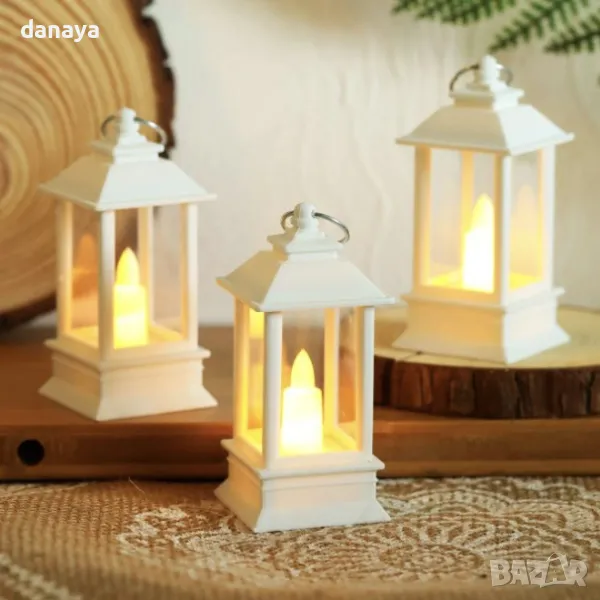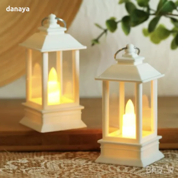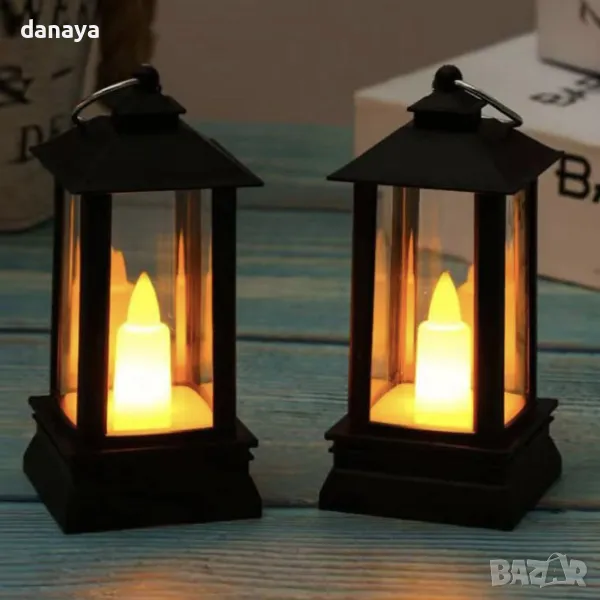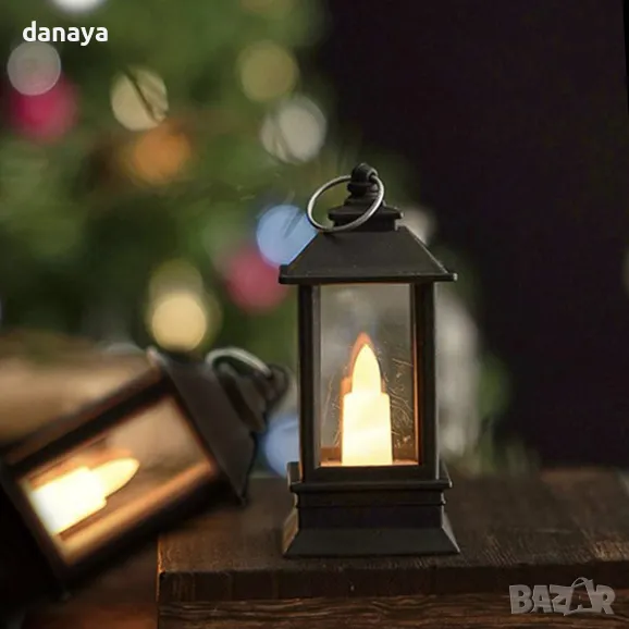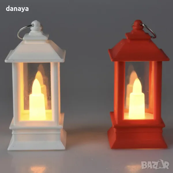 Мини коледен фенер в ретро стил. Електронна свещ, светилник. Добавете уют и магия към празничната атмосфера с този декоративен светещ коледен фенер, вдъхновен от ретро лампите. Компактен и елегантен с височина от 9 см и ширина от 4 см, фенерът е изработен от качествена пластмаса. В центъра му има малка електронна свещичка, която нежно примигва, създавайки реалистична имитация на истинска свещ с топла, мека светлина. С практична халка за закачане, този фенер е перфектен акцент за всяко пространство, където искате да внесете топлина и коледен уют.
