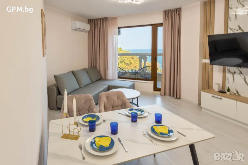 От терасите както и от дневната се отрива зашеметяваща гледка към морето.