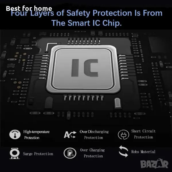 【Безопасност】 Батерийната клетка е сертифицирана по UL, разполага с четири слоя защита (презареждане, късо съединение, висока температура и защита от пренапрежение) с висококачествена огнеустойчива конструкция.