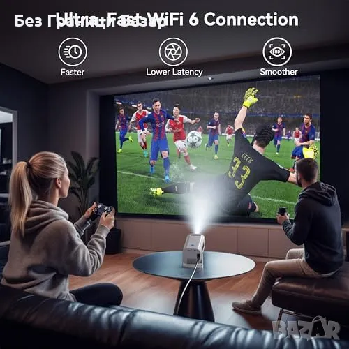 Нов Мини проектор Full HD 4K с WLAN6, BT5.2, 150" екран, Android TV