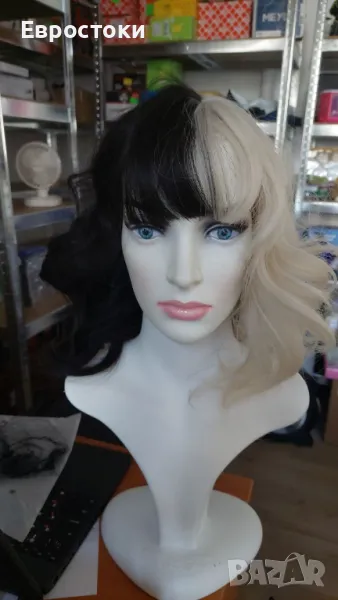 Shining Yourself ls460-1 Женска перука Cruella Deville Черно-бяла къса, къдрава перука с бретон
