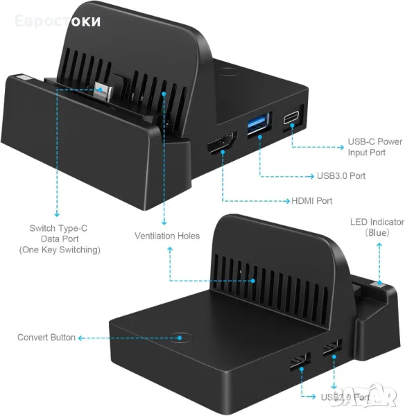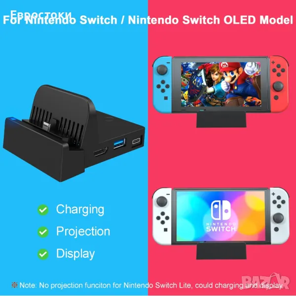 TV докинг станция за превключвател - преносима стойка за зареждане и HDMI адаптер с допълнителен USB 3.0 порт, резервна докинг станция за зареждане за