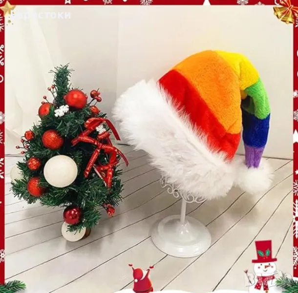 Коледна шапка Rainbow, многоцветна, топла коледна шапка на Дядо Коледа, унисекс