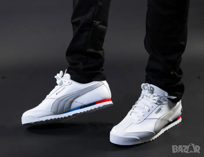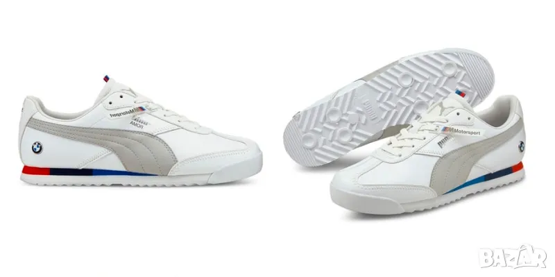 Маратонките BMW Motorsport x Puma Roma White се отличават с елегантен и вечен дизайн с бяла кожена горна част и марка BMW Motorsport. Тези маратонки съчетават емблематичния стил на Puma със състезателното наследство на BMW, което ги прави идеалният избор за всеки ентусиаст на моторните спортове или любител на модните маратонки.