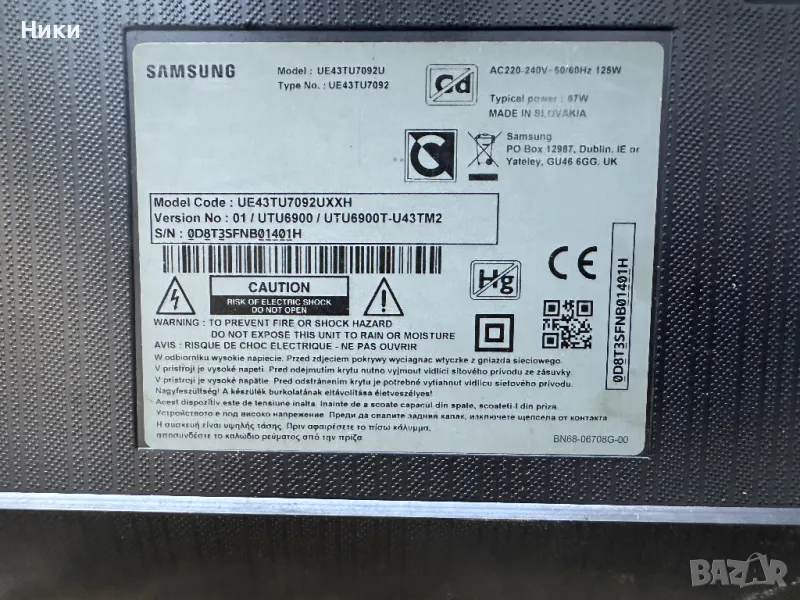 Wi-Fi Module WDN221M & Power Button от телевизор Samsung UE43TU7092U. Платката е работеща свалена от работещ телевизор със счупен дисплей. Модела на дисплея е CY-GT043HGHV3H. Изпращам по ЕКОНТ с опция тест и преглед!!! С оглед и проба на това, че модулите нямат гаранция, след прегледа, теста и заплащането не приемам възражения и ракламации, щото предварително всички платки и модули са тествани и в изправно състояние се пращат!!!