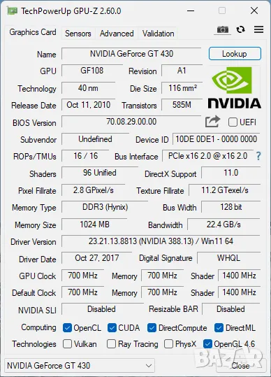 Chipset/GPU Model: NVidia GeForce GT430/GF108