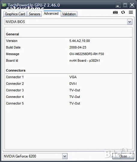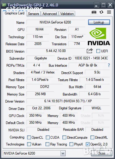 Продавам Видео карта NVidia GeForce Gigabyte N6200RH 256MB GDDR2 64bit AGP