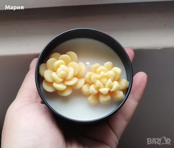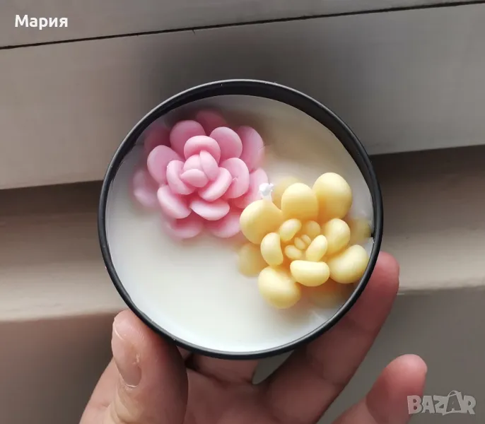 Кутия със Свещ Плюс декорация цветя 130грама-6,50лв