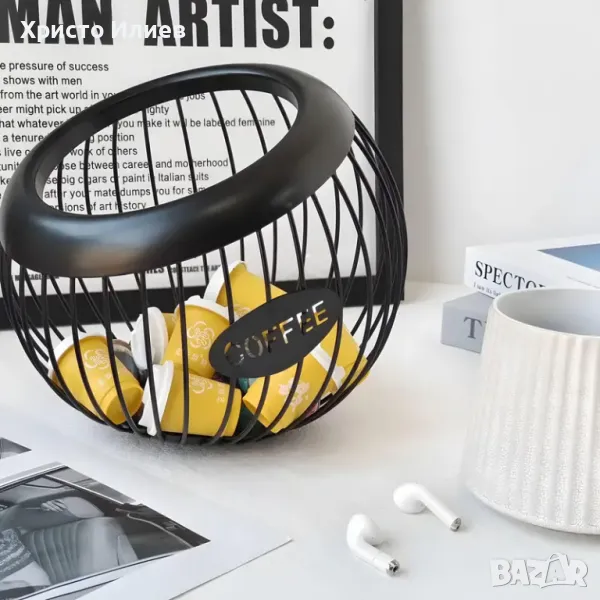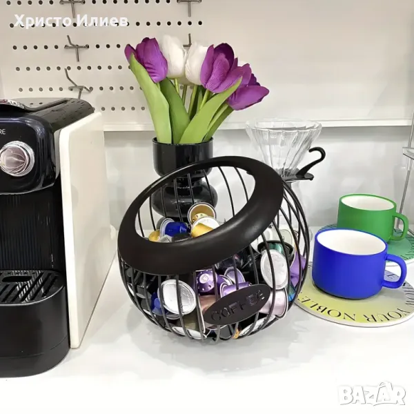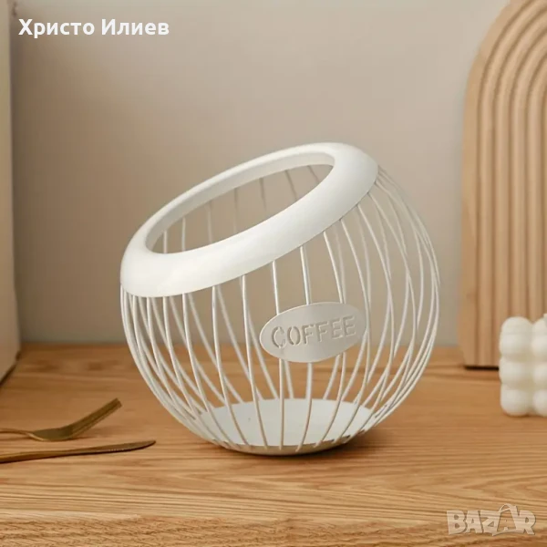 Държачът за кафе капсули предлага практично и стилно решение за поддържане на вашите кафе капсули спретнато организирани. Тази метална кошница за съхранение на капсули за кафе е проектирана да рационализира настройката на вашия кафе бар, осигурявайки гладък плот