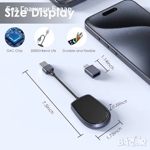Нов Безжичен CarPlay и Android Auto адаптер – лесна настройка, HD звук