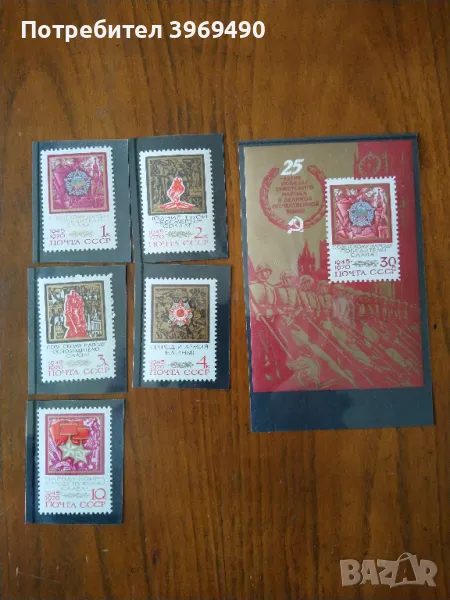 Серия от 5 пощенски марки плюс голяма марка блок от СССР 1970 г.25 години от победата във Втората световна война.