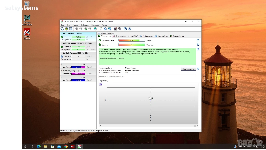 1.128GB - SSD ADATA SU650 (Windows 10 Professional 64-bit) 100% Здраве