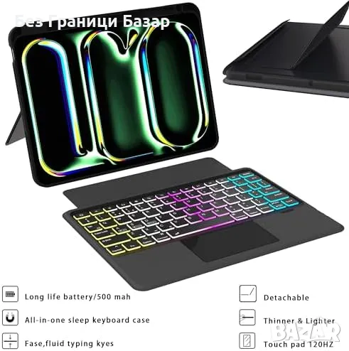 Нов Клавиатура Калъф за таблет iPad Pro 11 2024 M4, Подсветка и Тъчпад