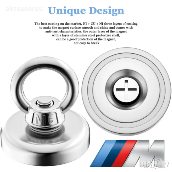 неодимов магнит. При идеални условия може да осигури теглителна сила от 9 /19