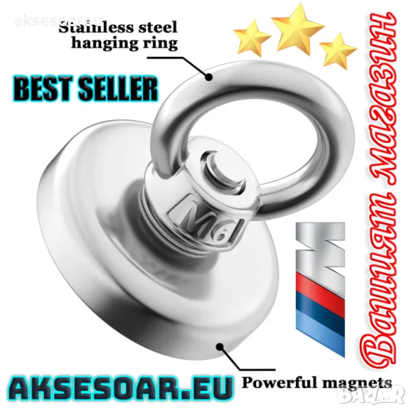 Супер Силен мощен неодимов магнит който се закача с въженце за изваждане на метални предмети от река вода труднодостъпни места неодимови висококачествени магнити Magnetic Fishing Magnetti Neomidium Imans
