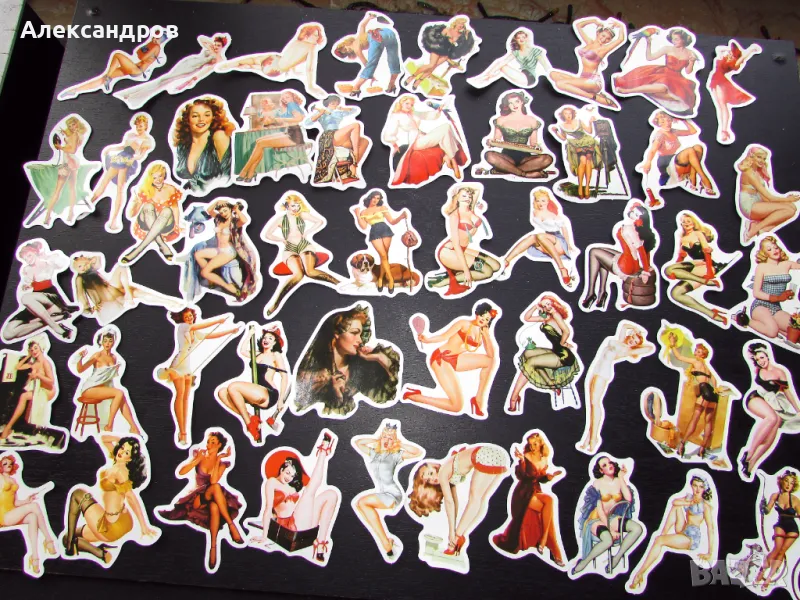 Стикери секси ретро мацки 50бр. за 20лв. Топ качество и цветове. , снимка 1 - Други ценни предмети - 47837138 Стикери секси ретро мацки 50бр. за 20лв. Топ качество и цветове. , снимка 2 - Други ценни предмети - 47837138 1/2