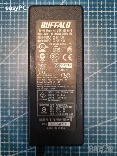 Продавам оригинален захранващ адаптер BUFFALO UAE325D-0512 HDD 12V 5V. Адаптера е употребяван,
