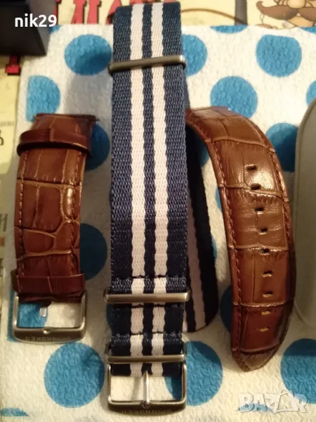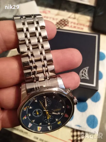 Чесовника е нов слаган е на рака 3,4 пъти няма и минимални следи от носене нямя и най малка драскотинка! Оригинално е с кожена кишка но аз съм сложил верижка, има кутия и всички книжлета с чесовника в комплект е с оригиналната кожена каишка и текстилната каишка. Марката е Японска исе произвежда за западна Европа всичко е на SEIKO! Снимки те са автентични! Без коментар по цената!!