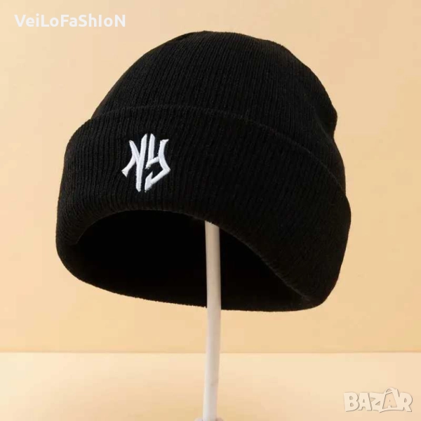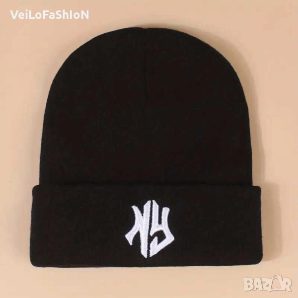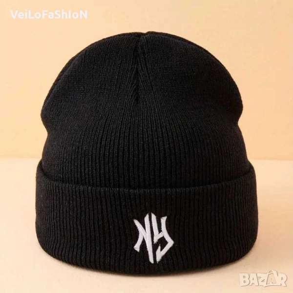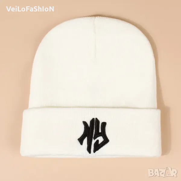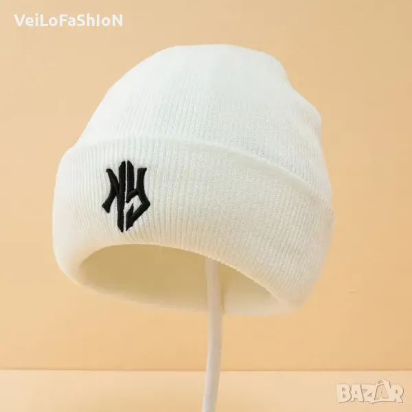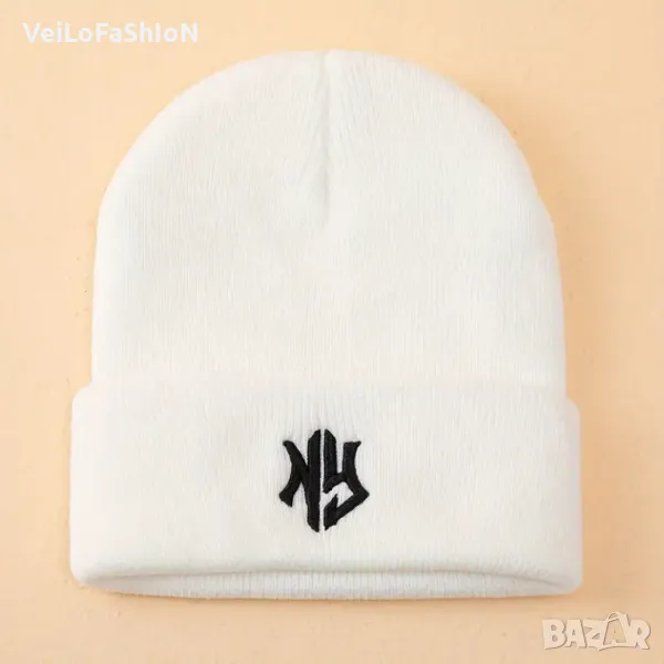Нова зимна шапка с логото NEW YORK в бял или черен цвят