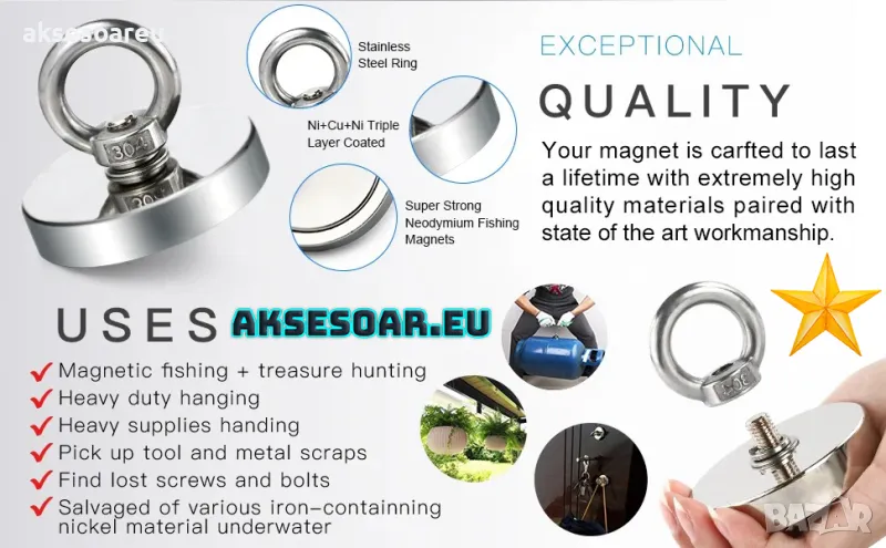 ▲Постоянна якост - Неодимът е редкоземен метал, подходящ за изработка на постоянни силни магнити. Този магнит за риболов има постоянен магнетизъм и ще бъде толкова мощен дори десетилетия по-късно.