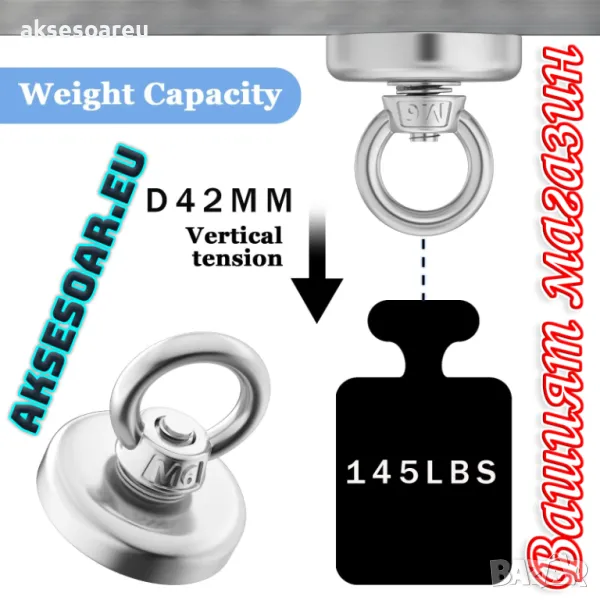 неодимов магнит. При идеални условия може да осигури теглителна сила от 9 /19