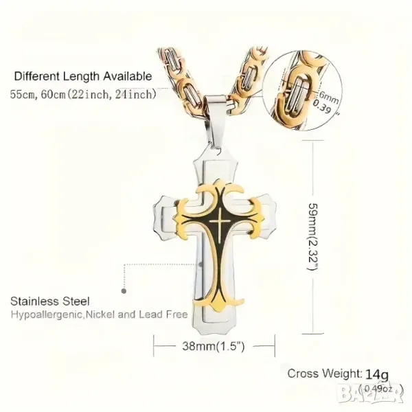 Масивно колие с кръст, снимка 1 - Колиета, медальони, синджири - 47838612 Масивно колие с кръст, снимка 2 - Колиета, медальони, синджири - 47838612 Масивно колие с кръст, снимка 3 - Колиета, медальони, синджири - 47838612 Масивно колие с кръст, снимка 4 - Колиета, медальони, синджири - 47838612 1/4