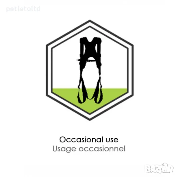 Сбруя за цяло тяло с колан за позициониране с 1 гръбен D-пръстен, 1 стернален D-пръстен, 1 вентрален D-пръстен и 2 странични D-пръстена. Адаптивност – Регулируеми раменни, бедрени ремъци и колан за кръста.