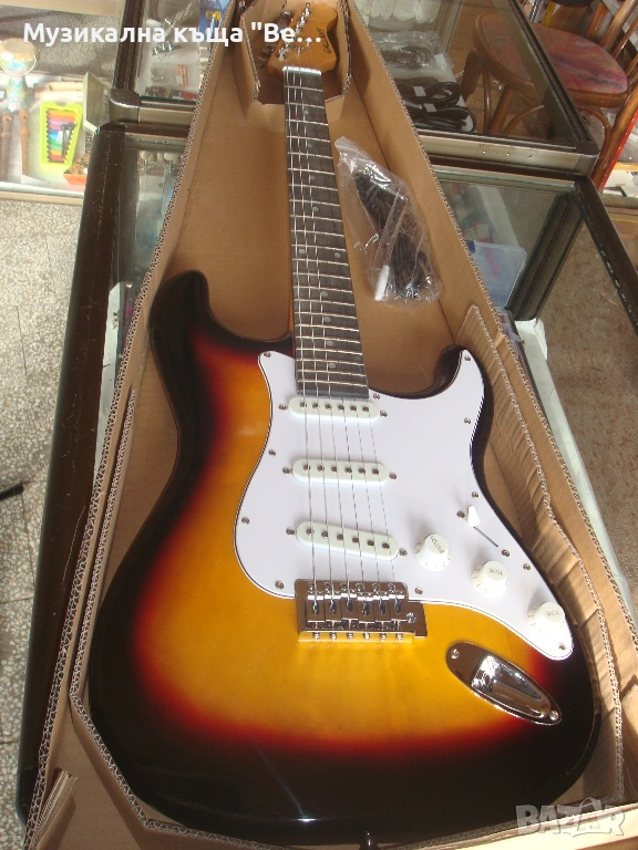 Електрическа китара с кабел, колан, тремоло и комплект шестограми за фина настройка в комплекта. Изпращам по Еконт, Спиди с опция преглед и тест.