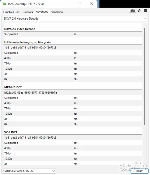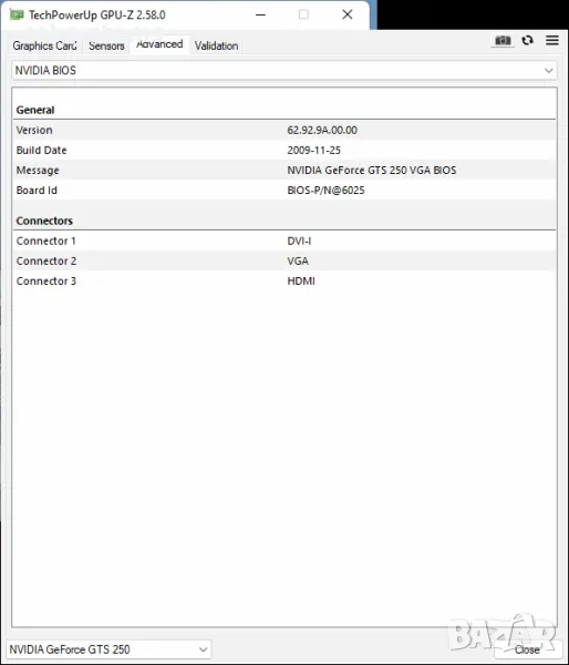 Chipset/GPU Model: NVidia GeForce GTS250